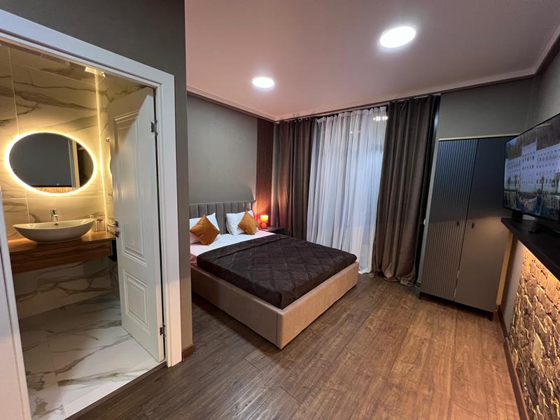 2х местный: 1 большая кровать или 2 отдельные , стол, стулья, шкаф, прикроватные тумбочки, кондиционер, телевизор, холодильник, wi-fi, эл. чайник, балкона нет.