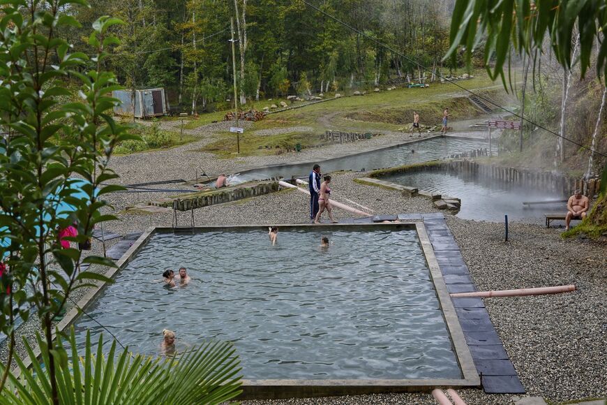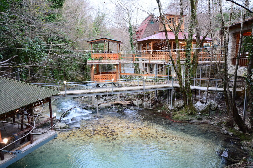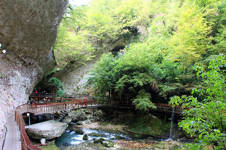 По дороге обязательно стоит заглянуть в Кындыгский термальный источник. Источник минеральной воды представляет собой один из крупнейших центров оздоровления в Абхазии. В комплексе есть лечебные подземные источники, резервуары с настоящей минеральной водой, бассейны с грязью, содержащей сероводород, а также гидромассажные ванны. Несмотря на не очень развитую инфраструктуру, Кындыгский источник пользуется большой популярностью среди отдыхающих, так как местные воды считаются эффективными в лечении артрозов, артритов, травм и даже некоторых гинекологических заболеваний.