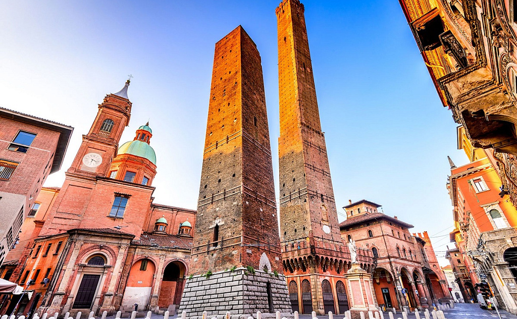 Болонья известна своей изящной архитектурой. Ее исторический центр сохранил множество средневековых и ренессансных зданий, включая площадь Пьяцца Маджоре, Неаполитанский палаццо и башню Азинелли.