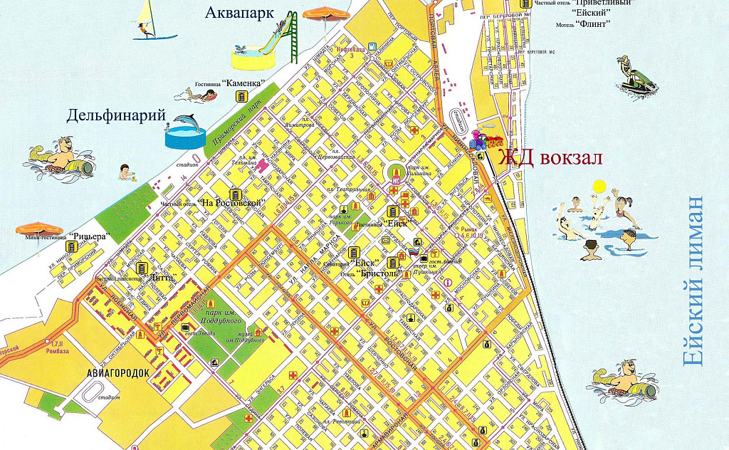 К главным достоинствам Ейска можно отнести его относительно компактные размеры, доступные цены на жилье, а также отсутствие избыточной суеты, ставшей неизменной спутницей популярных мест отдыха. Не последнюю роль в столь позитивном имидже играет и само Азовское море. Необычайно мелкое и теплое, оно идеально подходит для тех, кто отправляется на отдых с малышами, которые только учатся плавать..